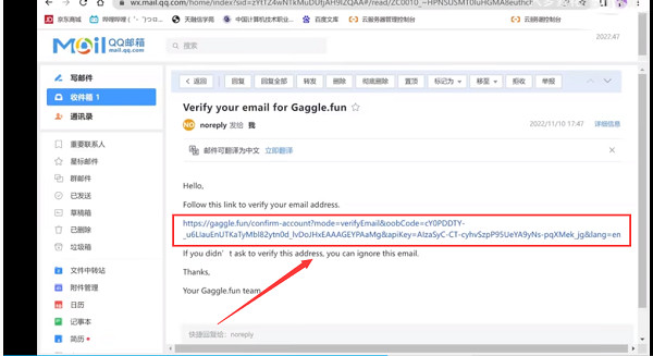 4、进入邮箱,打开链接进行核实;