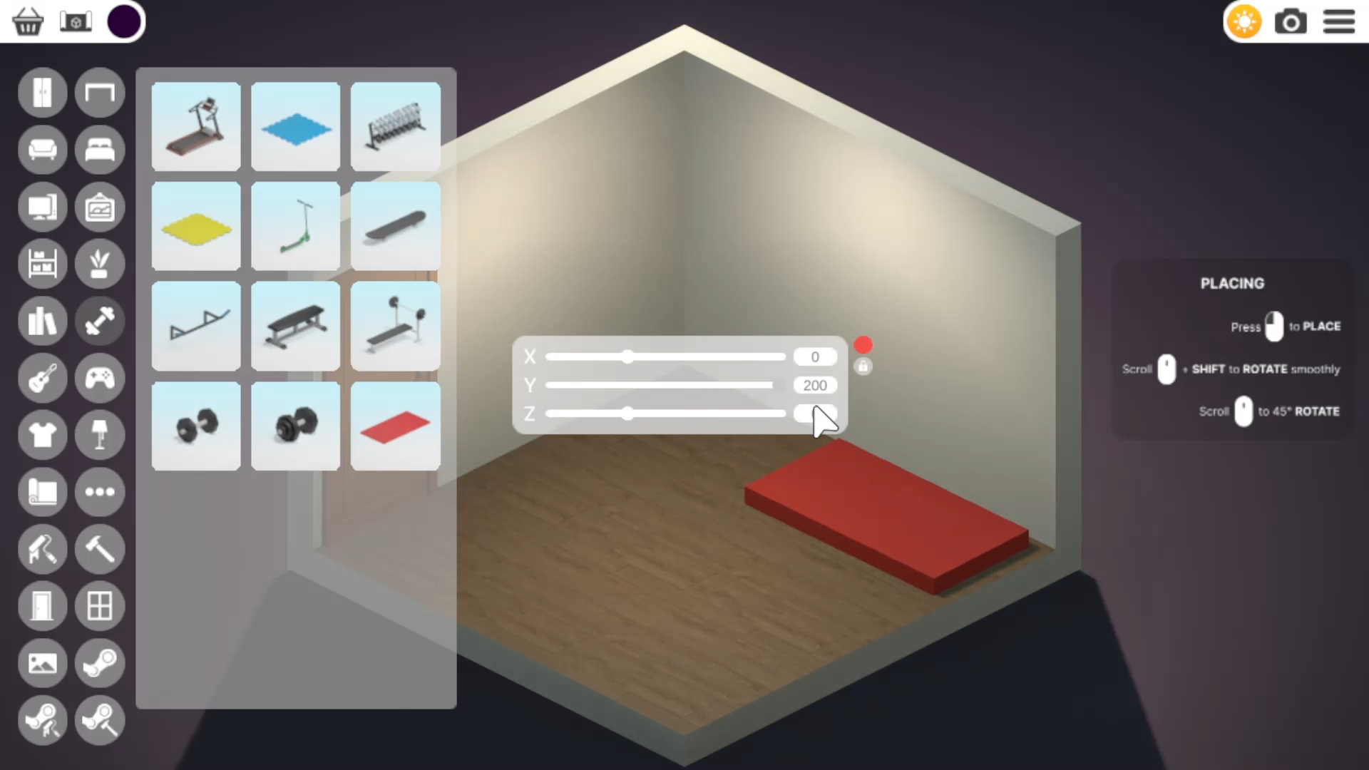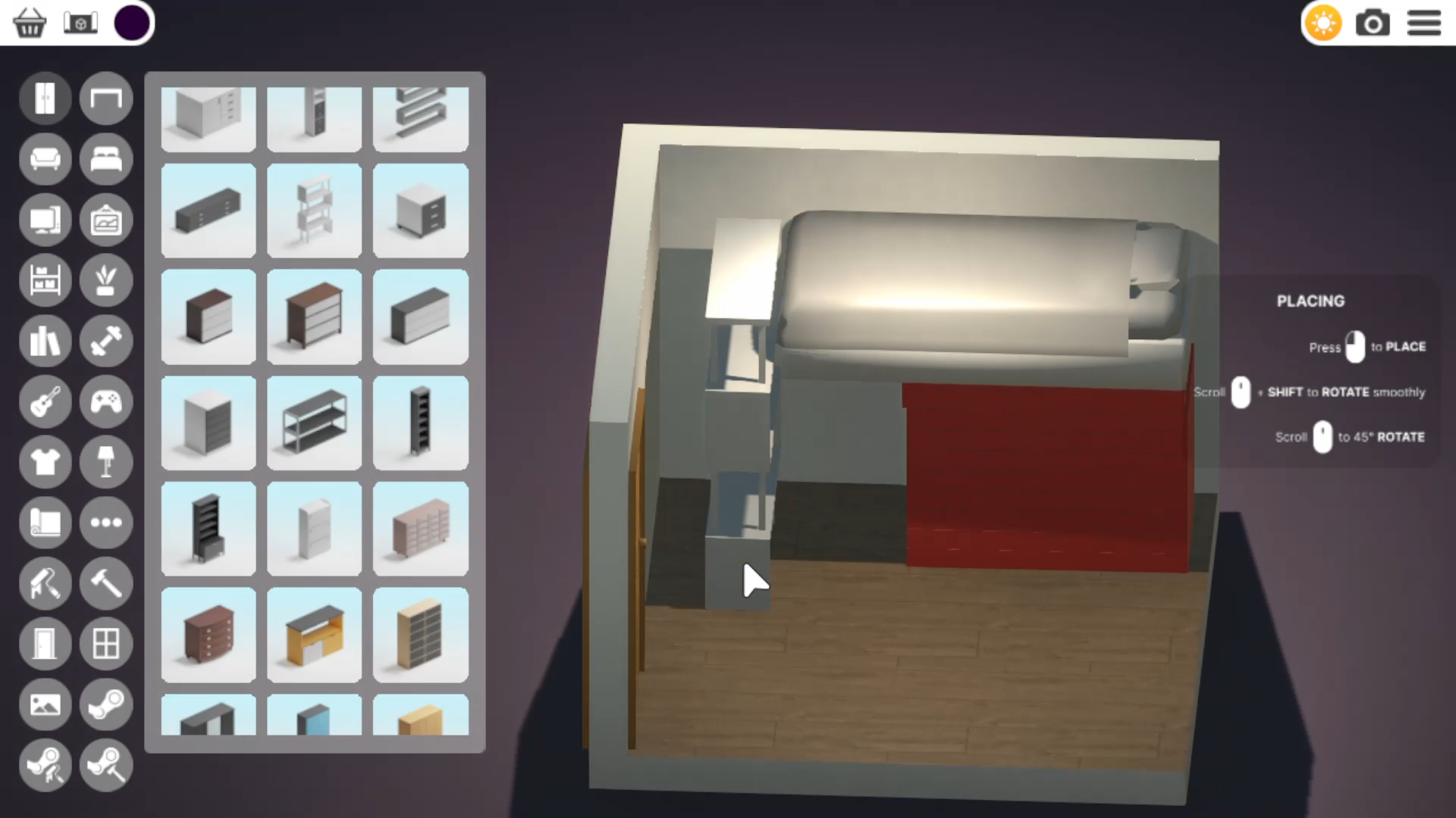没有网格的限制,完全自由摆放。如果你对家具摆放的位置不满意可以随时移动到新位置。房间里的家具没有数量限制。创造出一个又小又整洁的办公室还是一个摆满电脑和其他物品的大工作室,都取决于你。