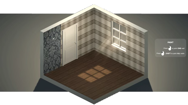 想在房间里贴上鲜花壁纸吗?或者喜欢loft风格并且想要一堵砖墙?单独粉刷每面墙来创造出最出人意料的墙面风格,或点击一下粉刷整个房间,让想象力尽情发挥。