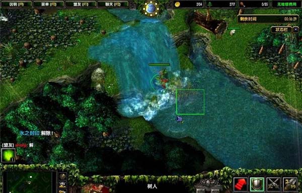 2、站到地图右中瀑布上面,输入“封印术-水之封印”。此时瀑布下面的路就封死了,树人炎魔都无法通行