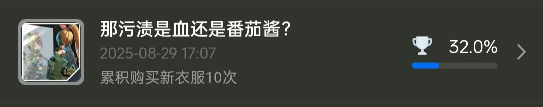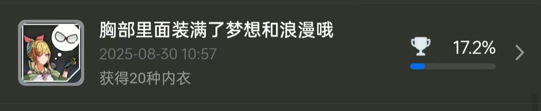 7.累积类成就(折磨人来的,上面那个新衣服也是累积),都是字面意思就不多解释。