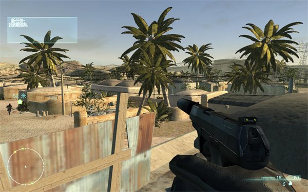 5.上了屋顶后注意前方,三四个阿拉伯民族装扮的人在前方房屋之间,小心别被射死了。射杀这几个,从房顶下去,向五角星的方向跑去,在那会遇到同伴