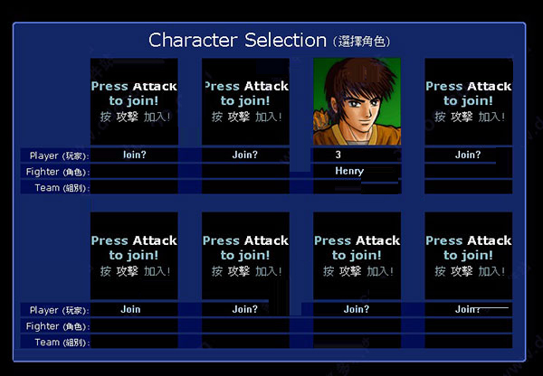 1、首先需要进入LF2游戏界面。然后点击“开始游戏”,点击“闯关模式”进入选择角色界面。
