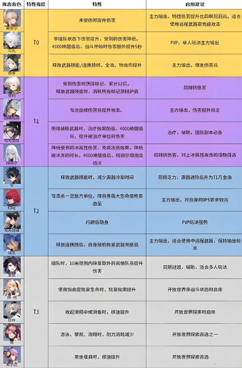 1、例如爱歌的特性是能提升范围内队友的伤害,非常适合与其他玩家组队时作为辅助启用。而乌丸的特性是提升非组队状态时造成的伤害,且降低受到的伤害,则更适合喜欢单独闯荡的玩家。