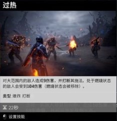 快速发动火焰震击,打断周围的敌人并造成少量伤害,如果敌人正在燃烧,则消耗掉燃烧状态并额外造成大量伤害。
