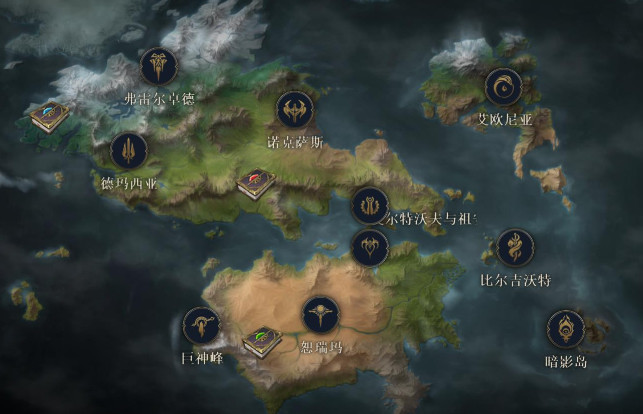符文之地有数块大陆,不过所有的生命都集中在最大魔法大陆——瓦洛兰。瓦洛兰大陆居于符文之地中心,是符文之地面积最大的大陆。