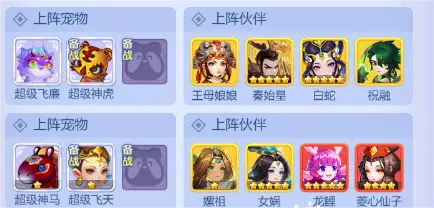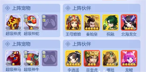 阵容1:王母娘娘+秦始皇+祝融+北海龙女+超级神虎+魔王技能