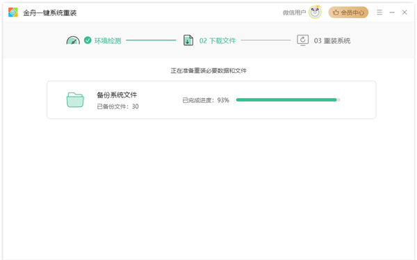 4、稍等片刻,软件正在准备重装必要数据和文件,并且将系统文件进行备份;