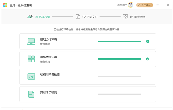 2、软件会对电脑环境进行检测,满足条件即可实现重装;