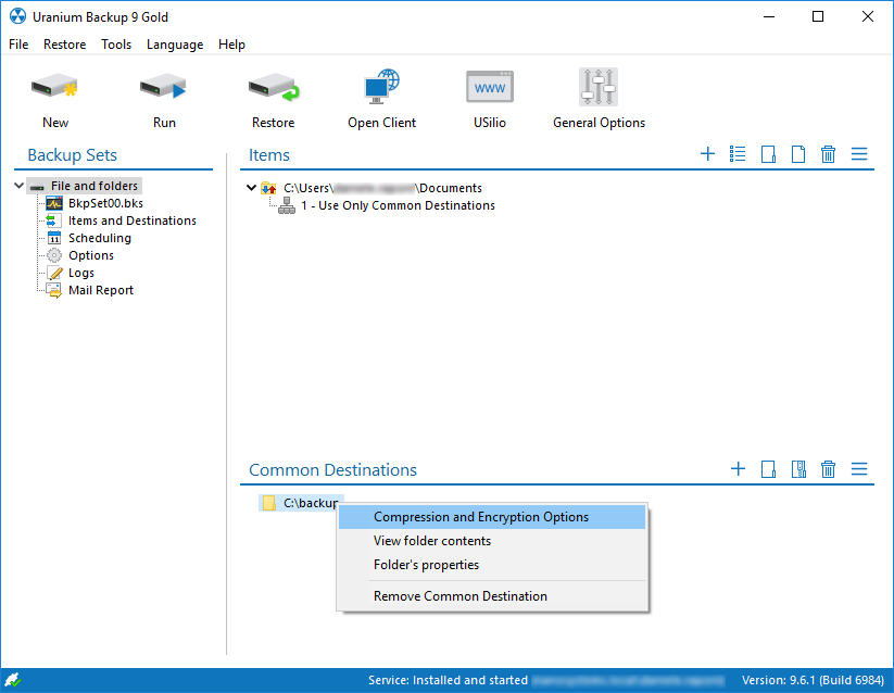 铀备份可以压缩备份文件夹并加密。右键单击目的地并选择压缩和加密选项: