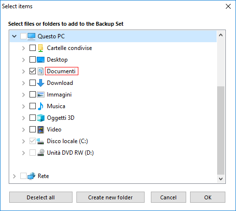 选择要备份的文件和文件夹:
