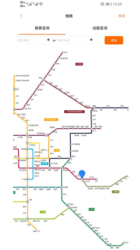 提供地铁发班时间、末班车时间、途经站点、换乘站点等信息,用户可通过“换乘查询”、“站点查询”、“线路查询”三种查询方式来获取相关信息。