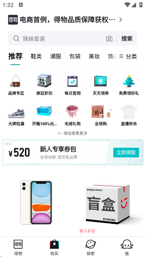 得物App第一时间上新一线潮牌商品,为在潮流前沿冲浪的你提供最时尚、最新潮的潮流好物。