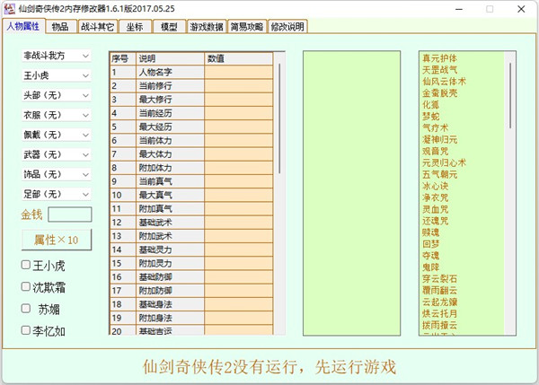 2、打开仙剑奇侠传2修改器,并再次进入游戏