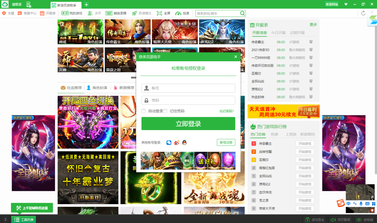 新浪页游助手抢先版可以抢先体验新浪页游助手的新功能,是一款专门为网页游戏用户量身打造的网页游戏辅助浏览器。新浪页游助手抢先版具有体积较小、安装简单、挂机不掉线、辅助更稳定等特点。